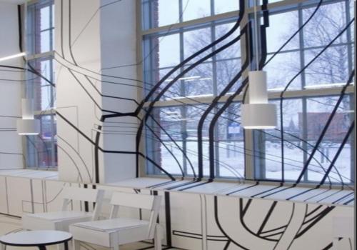 Logomo Cafe,一家芬蘭的咖啡廳.黑白的互相搭配,錯(cuò)亂的感覺,線條錯(cuò)綜復(fù)雜的咖啡廳設(shè)計(jì),給您美得享受!