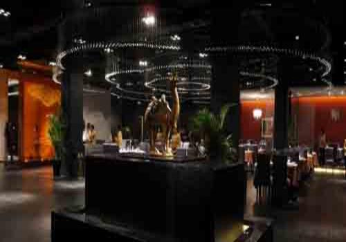 設(shè)計(jì)師把墻體、家俱、飾物的變化作為“實(shí)”,而頂部(尤其公共部分)作為“虛”。墻面色彩、材質(zhì)的反差強(qiáng)對(duì)比。極為干凈的白色和純凈深遂的黑色、壁紙的中性色、其間點(diǎn)綴的飾品追求一種中國(guó)水墨大寫意的感覺(jué),手法簡(jiǎn)約、干練,加上3。9M的凈高的尺度,體現(xiàn)出大氣之雅;將牡丹的圖案作為素材出現(xiàn)在門廳入口兩面4M高的銀箔墻面及散臺(tái)區(qū)頂部由光纖燈構(gòu)成的綻放的牡丹花光纖燈中;洛陽(yáng)出土的唐代陶俑及青銅器被精心的安排在不同使用的空間,使傳統(tǒng)地域文化與現(xiàn)代簡(jiǎn)約空間有著默契的對(duì)話與交融。