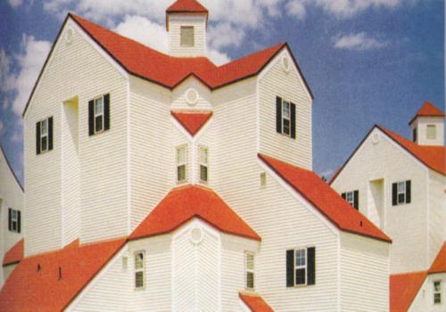 與基地相鄰的建筑是安尼女王風格的維多利亞式建筑。本組建筑在造型上,以屬于鄉(xiāng)村的風格和尺度作為設計的出發(fā)點,通過運用多變的坡頂和木檐板的外墻,以及具有歷史感的色彩,使建筑的外觀具有本地區(qū)的某些古典風格特征。建筑平面以3.6m×3.6m的平面網格組織平面,形成明確的秩序感和尺度感。