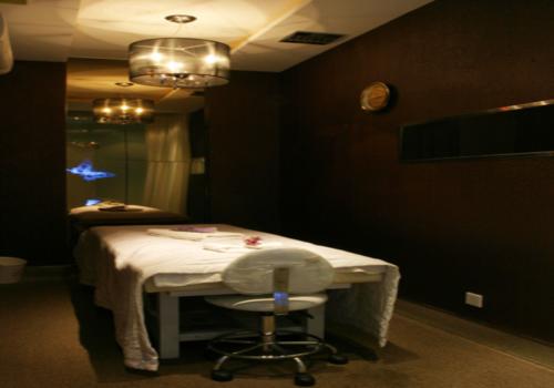 該SPA設(shè)計(jì),地面采用金屬鈾板,頂部用暖色鏡面拉升空間,讓空間縱向擴(kuò)大,靠近走廊的墻面, 用印花玻璃和紗縵分割,使得內(nèi)外空間輕松、雅致。最能影響顧客心情的局部空間采用北方特有的羔羊皮點(diǎn)綴,柔美、溫暖,創(chuàng)造出一個(gè)完美新SPA空間。