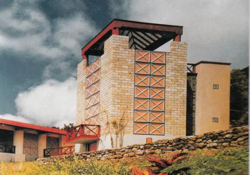 別墅是為一對(duì)有成年兒女的夫婦所建的度假之地,基地位于西印度群島乃韋斯島的陡坡上,建筑面積約93㎡。