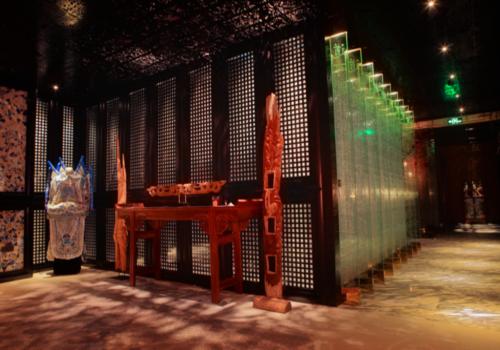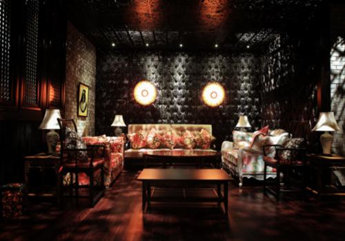 會所設(shè)計效果圖,條形桌案,戲劇妝,演繹一臺人生戲。人生如戲,戲如人生。