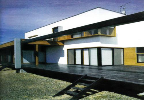 日本C住宅C-House基地位于仙臺市區(qū)的一個向南的緩坡上,基地沿東西向展開。由于基地的形狀長而窄,因此該別墅設計也增加了難度?;乇泵娴娜种惶幱谌毡窘ㄖㄒ?guī)中限定的“易火區(qū)”,北墻必須采用防火墻,白色的防火墻給予建筑以最大限度的私密性。