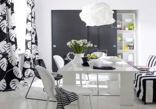 白色它是全色相,因此它與大多數(shù)色彩相配都很出彩。特別是當(dāng)室內(nèi)中有大面積的純色時,白色就顯得更加重要,它會使空間“透一口氣”。