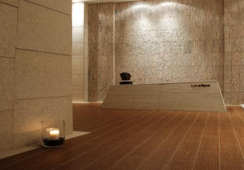 設(shè)計(jì)師大面積整體使用木板和石材,配以具有中國(guó)特色風(fēng)格木格圖案,采用大小面積對(duì)比,以點(diǎn)帶面,含蓄內(nèi)斂。集聚東方傳統(tǒng)的哲學(xué)思想來(lái)詮釋空間。