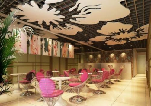此美容院設(shè)計整個走道空間活潑、優(yōu)雅、流暢。墻面配備不規(guī)則的精美掛畫,通過設(shè)定的色塊基調(diào),使過道更豐富,同時增加了廣告的宣傳面,達到理想的空間效果。
