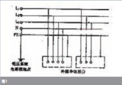 圖1所示為典型的TN系統(tǒng)示意圖。顯然,一旦出現(xiàn)相線對(duì)大地短路,將在接地電阻上產(chǎn)生很高的對(duì)地電壓,這個(gè)電壓會(huì)通過共用接地系統(tǒng)傳導(dǎo)到其上的每個(gè)用戶家中。