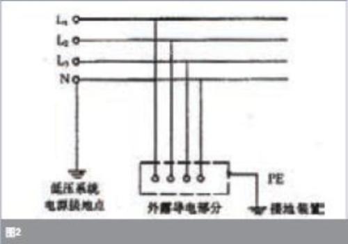 圖2所示為TT系統(tǒng),跟TN系統(tǒng)一樣,接地電阻值均按觸電時(shí)的接觸電壓不超過50V限定。
