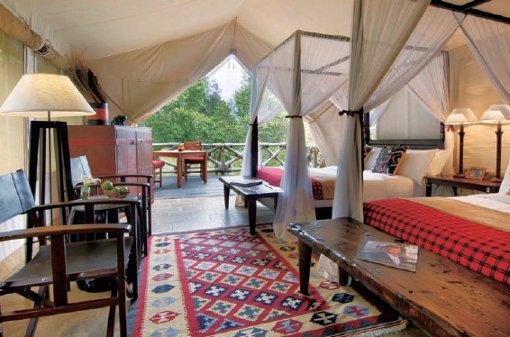 所有的帳篷都提供私人觀景臺,可以隨時觀看河馬和鱷魚。每個房間都配有四柱床、枕頭、床墊和細亞麻布以及3 件浴室配套設施:太陽能熱水器、點心室和室內(nèi)保險箱,以及無線電話。客人還可以在陽臺上用餐,所有工作人員力求滿足客戶各式需求。