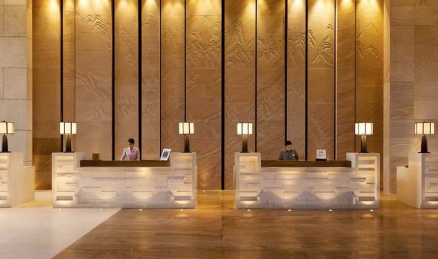 星級(jí)洗浴會(huì)所設(shè)計(jì)的大堂柜臺(tái)通常使用木材、帶金屬框架的硬木、疊層或注塑表面,還可以使用大理石或水磨石耐用鑲板進(jìn)行裝飾。