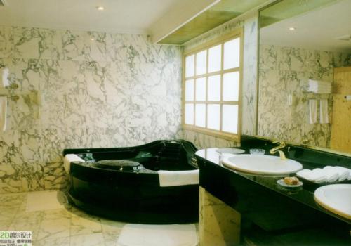 厚重的石材與輕盈的玻璃讓衛(wèi)浴間充實(shí)而簡(jiǎn)潔,沒有過(guò)多的裝飾,而用中式的雕花窗扇來(lái)營(yíng)造濃郁的浪漫風(fēng)情。透過(guò)雕花斑駁的光影,原本直白的光線變得富有情調(diào),簡(jiǎn)練與柔媚,兩種不同的風(fēng)情因?yàn)殛?yáng)光的融入,巧妙地結(jié)合在一起。而木質(zhì)窗扇既不怕水又能透光,是布藝窗簾所不能比及的。