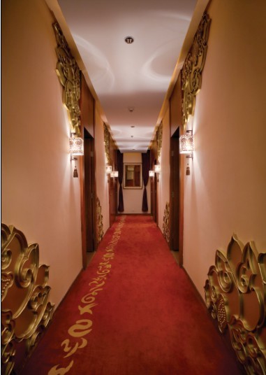 走廊樓梯作為整個洗浴中心過渡空間,使洗浴中心各個功能區(qū)域得到合理而充分的利用。即走廊樓梯的空間位置布局,充分利用現(xiàn)有空間資源,把有限的空間連接起來,形成無限的空間,便于人們的內(nèi)外交通或上下交通。走廊樓梯的空間構(gòu)成主要是引導人們的行走路線,既規(guī)范人流走向,又有安全管理的作用。