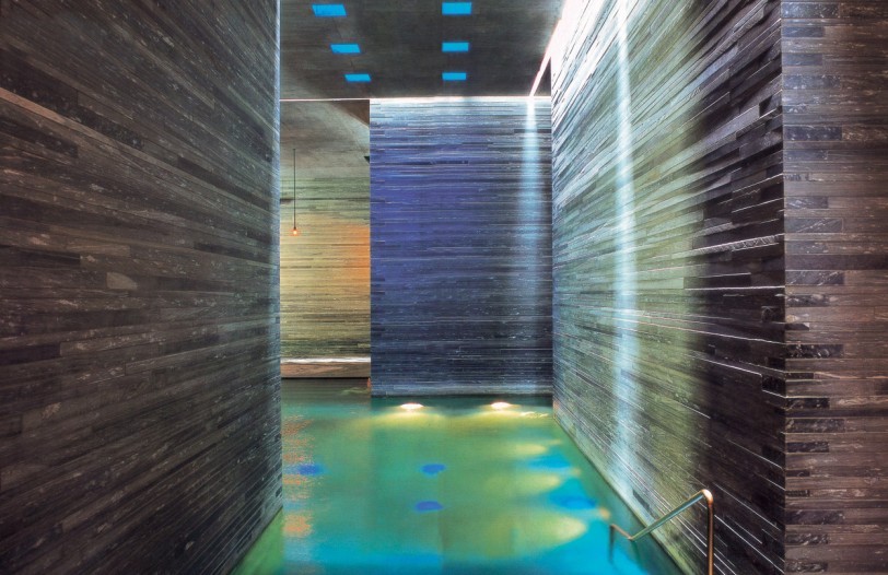 目前比較流行的洗浴裝飾設計風格以自然風格為主,其室內(nèi)用材也是以天然石材和木材為主。石材則通常是粗質(zhì)地的毛石面,不加過多的人為修飾痕跡。