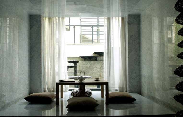 休息區(qū)采用溫馨的淡色調(diào),既與spa空間的氣質(zhì)吻合,又使人感到放松、安寧。色彩也不宜繁雜,否則會(huì)帶給人疲勞感。
