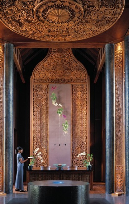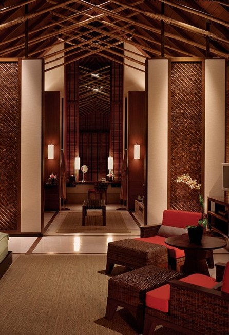 挑高如圣教堂美麗的天花給人無限的遐想,令別墅內(nèi)洋溢著高貴而時尚氛圍。水療設計充滿東方風格并以大量天然物料如海草、柚木、藤蔓、桃花心木、椰子殼及絲綢等點綴,與屋內(nèi)的簡潔線條相得益彰。寬敞浴室里設有巨型水磨石浴缸,每一個均需時七天建造及打磨;浴室亦設有強力花灑及雨林式淋浴間,其中多間別墅更設有露天淋浴設施。