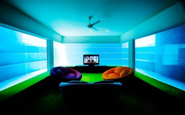 整個洗浴中心設計利用所處的環(huán)境,與自然融為一體,與四周融為一體。其中設置了泳池,利用綠化景觀和海景進行連接,以達和諧。地下室設置視聽室,頂部為透明硬質塑料窗,可引入泳池的波光。整個房子變得波光粼粼,不覺讓人產生與海融為一體的幻覺。屋頂上還種植了各種花草,為居住者平添一份生活的愜意。在如此的環(huán)境下居住,將身心融入于自然之中,如魚得水,天人合一。