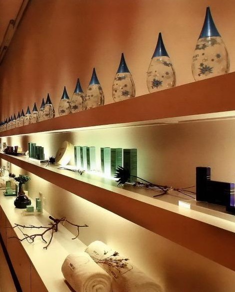 剛剛踏入依云大堂,你就會被巨大的震撼感所撞擊。35米超高中庭里是個(gè)“虛擬花園”, 5塊天然巖石若有所思地安放在接待區(qū),極具抽象藝術(shù)效果。就連腳下的地毯都設(shè)計(jì)成了水滴狀,環(huán)環(huán)的波紋猶如海風(fēng)吹拂下掀起的小浪花,仿佛就能聽到潺潺的水聲和絲絲的海風(fēng)。步入高達(dá)2層的開闊理療大廳,更是柔美萬分。通透的玻璃走廊貫穿于依云水療的公共區(qū)域,簡約的設(shè)計(jì)讓人忘卻塵囂, 14間私密的理療室每一間都有不同韻主題:或是由竹子來傳達(dá)自然氣息,或是用抽象的中國水墨畫表達(dá)沉思和寧靜。