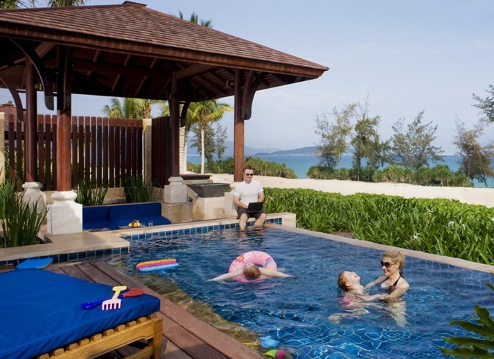 第二,在景觀空間的營(yíng)造上,要結(jié)合西方現(xiàn)代洗浴中心景觀設(shè)計(jì)理論所提出的功能性、生態(tài)性、藝術(shù)性與社會(huì)性等要求進(jìn)行空間屬性的劃分,基本上采用內(nèi)、外向型空間的對(duì)比和結(jié)合。如麗江悅榕莊、三亞麗思·卡爾頓中, 它們的定位基本是酒店或度假休閑,因此在洗浴中心景觀設(shè)計(jì)的部分都是根據(jù)中國(guó)固有的模式,外圍有圍墻, 內(nèi)部有一條外向型的主景觀帶,呈魚(yú)骨狀發(fā)散出內(nèi)向型的客房區(qū)和住宅區(qū)。特別值得一提的是,中國(guó)傳統(tǒng)園林中的圍墻不僅是實(shí)體的阻隔,更是保守、封閉心理上的虛擬屏障。上述案例已經(jīng)將這一傾向徹底消除,它們都 真正踐行著“流動(dòng)空間”的思想,讓開(kāi)放性的景觀空間共存于實(shí)體和虛擬的空間之中。