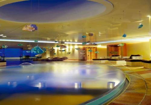 希臘six?。螅澹睿螅澹蟆。螅穑岑燄B(yǎng)區(qū)中Tepidarium區(qū)繼承了羅馬傳統(tǒng)溫泉?jiǎng)俚氐拿?,作為整個(gè)SPA的焦點(diǎn)所在,它可謂是一個(gè)能夠全面徹底地激發(fā)人們感官的宏偉空間設(shè)計(jì)。水是該區(qū)域設(shè)計(jì)的主題,其中包括瀑布水景以及屋頂游泳池中的氣泡。人們透過巨大的玻璃面屋頂可以欣賞到上面這個(gè)充滿魅力的室內(nèi)景觀。