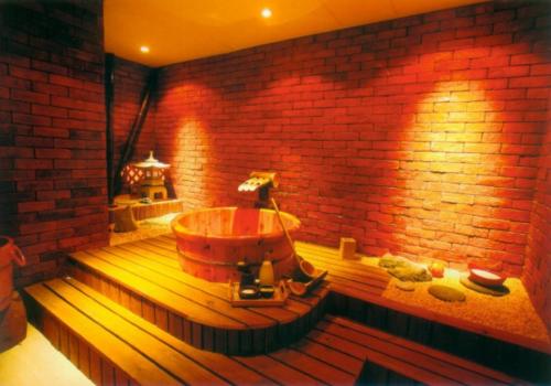 該日式水療中心面積約為5000平方英尺,洗浴水療中心設(shè)計融合西方流線型空間結(jié)構(gòu),以一個正圓形室內(nèi)日式小庭院為視覺空間的焦點。