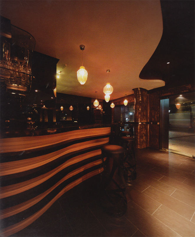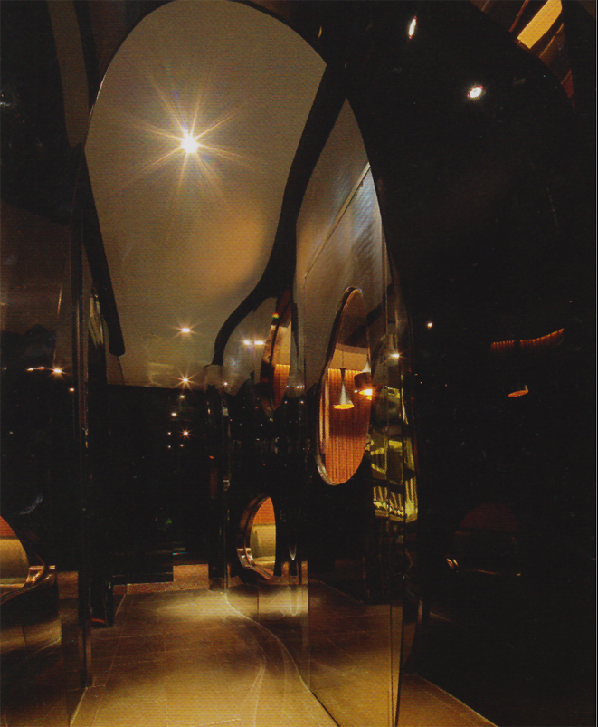 經(jīng)過拉雷紅會被整面的黑吸引,一整面的黑墻模糊了人們的影子與光的對比更模鞫了上海的白晝。黑讓人松懈,而放輕松走入夜總會就是黑的有理,那輪如月亮般升起的店家招牌,輕輕劃過一絲絲云淡風(fēng)輕的金屬線條,構(gòu)成一片抽象的的專屬時尚,推開金色門把,人們可以立即觸入道夜晚的歡愉。