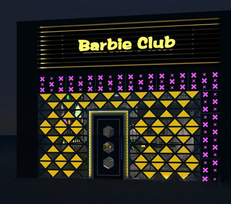 這是一個位于市中心與郊區(qū)的娛樂場所,真題的外觀主要是由普通的白色條形外墻磚構成,屬于一種常規(guī)的夜場設計。但是整體的外觀設計中,墻面上都有一種很比較有含義的圖片吸引著消費者去娛樂。