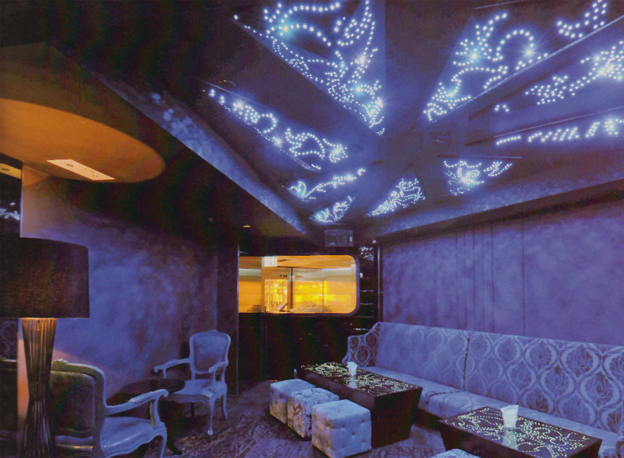 大膽的天花造型為此夜總會的一大亮點,奪人氣勢,而并不霸道。設(shè)計中的主從關(guān)系從天花造型上已經(jīng)確定,浦一進(jìn)門,便被整個大廳的氣勢所吸引。其他各種元素在絢麗燈光的照射下,在DJ煽情的吶喊聲中,氣氛持續(xù)走向高潮,在這個媚色的夜晚中形成一片沸騰的快樂夜總會,釋放出誘人的激情和魅力。