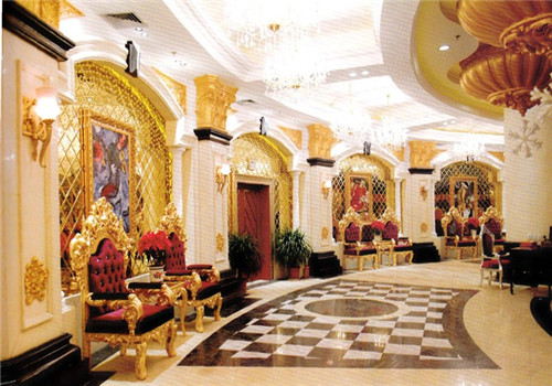 在LED燈光的作用下,透著歐式古典的韻味,又散發(fā)著濃郁的現(xiàn)代氣息。歐式紗簾和歐式壁畫以及鏡框的出現(xiàn),則營造出了一個個富有歐式奢華感。負(fù)責(zé)該夜總會設(shè)計(jì)的設(shè)計(jì)師游走于古典與現(xiàn)代之間,用華麗燈光和斑斕的色彩把人們帶入一個繽紛的世界。