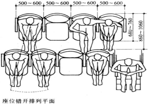 ?。?、流暢的交通是安全的保障。座位的排與排之間最小距離應(yīng)為0。86米(見(jiàn)圖5-2);兩邊的通道上應(yīng)設(shè)置出入口,一般來(lái)說(shuō),出入口的間距不能超過(guò)五排座的距離,出入口的寬度應(yīng)有1。6米;根據(jù)防火規(guī)范,在影院內(nèi)走動(dòng)的距離應(yīng)不超過(guò)45米,通道不宜用踏步式,盡量使用無(wú)障礙設(shè)計(jì);出入口標(biāo)志燈應(yīng)在各個(gè)位置都能看清。