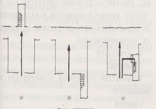 只有圖3-142(c)將主樓梯置于門廳側面,既靠近人口,又能以樓梯側立面的造型展示在人們面前,這是比較好的選擇。