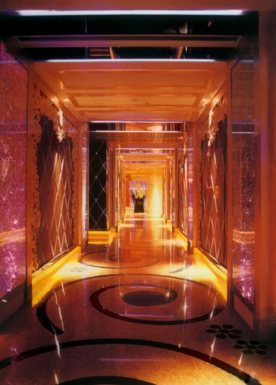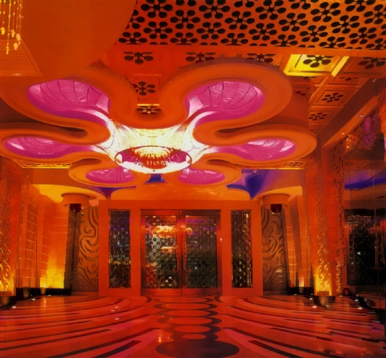 這個夜總會的大堂是核心,是樞紐,對于使用功能來說是個集散地,對于空間形態(tài)來說是性格表達(dá),需要反映文化內(nèi)涵。墻面的淺紫色弧形映襯著地板深色的弧形,一深一淺交相輝映,完全烘托室內(nèi)氣氛。大堂的吊燈與天花板為一大一小相同系列的造型,同款不同質(zhì),突顯不凡氣質(zhì)。包間的設(shè)計,則以紅黑兩個最佳搭配為主色調(diào),并鋪以綠黃藍(lán)等燈光搭配。動感十足,如果說夜總會是讓人放松娛樂的地方,那么期間的沙發(fā)則更加和湖人,包容人。雕花的超大沙發(fā),配上絢麗的酒紅色燈光,讓人感覺恍如進(jìn)入一個奇妙的外星球。小包間的吊頂像冰清玉潔的白蓮坐落在池塘中,蓮花在超脫中盛開。