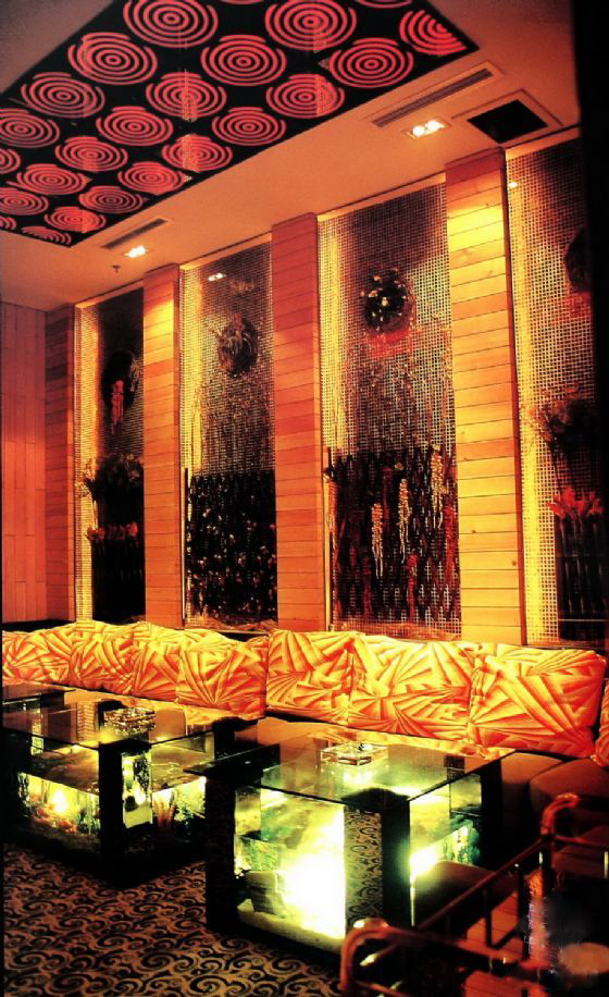 夜總會--北京今日良緣夜總會-圓形沙發(fā)的光纖圍繞在房間中央,區(qū)分出動(dòng)、靜兩個(gè)區(qū)域。