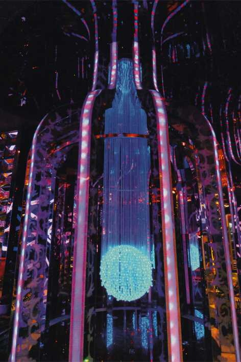 夜場設(shè)計是人們尋找快樂,放松身心的體驗空間,是夜生活的主題空間。燈光則是夜場的魔術(shù)師,一切情緒都由它掌握。本案例采用光影交接的虛幻表現(xiàn)手法,通過光纖與鏡面反射營造出撲朔迷離的絢麗空間。行走在這里,伴著斑斕的色光,不可捉摸的視覺效果,仿佛在聆聽一曲光、色、影的交響曲。房間則是在光、影的基礎(chǔ)上配以幾何圖形,讓墻和天花板連為一體,使整個空間渾然一體而又絢麗多彩。