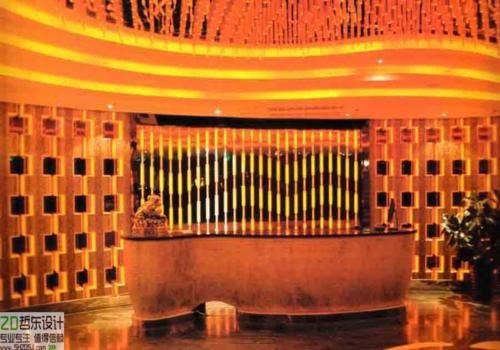 大堂:復(fù)雜的大理石拼圖地面,墻面的波浪造型,天花上的水晶棒再加上LED燈光產(chǎn)生的效果,使整個(gè)空間產(chǎn)生一種別樣的炫目感。