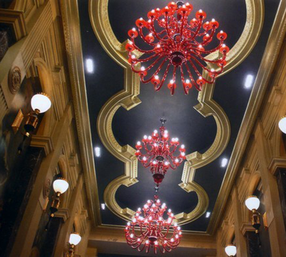 走進壹號公館俱樂部,進入的是一場裝飾主義的盛宴,一個古典裝飾元素與現(xiàn)代工藝交融的異度空間,一段極盡奢華而又充滿無數(shù)驚喜的奇幻夢境。二樓是中包房、紅酒屋、洋酒屋及休息區(qū)。淳厚深邃的墨綠色墻面配上繁復華麗的金色木線條,品質(zhì)上乘的大理石,錯落在走廊、包房中的古典油畫,加以點綴上精心挑選的擺件、布幔、水晶燈……雙眼被這一處處的匠心獨具弄得迷離、迷失。仿佛這已不是俱樂部,而是一座歐洲貴族的官邸。連接二三樓的是氣派非凡的寬大通道。巨大的紅色水晶吊燈,直到天花的巨幅壁畫,通向的又是另一個怎樣的奇妙空間?三樓的特色是它層次繁復的墻群。運用渾水裂紋漆的獨特做法,營造出充滿古典主義裝飾昧道的氛圍,仿佛存在的年代已經(jīng)久遠。甚至以獨特的做法,運用油漆制作出石材的效果。裝飾主義的精髓被把玩得如此恰到好處而又驚喜連連。這個夜場設(shè)計是值得您來的,